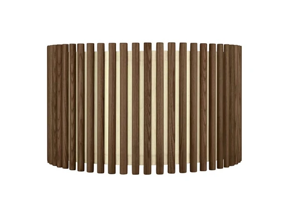 Komorebi Lampshade Large Circle Dark Oak is an innovative and flexible lampshade made of wooden slats and textile - a combination that creates a calm expression in the home. The lampshade is part of a whole series and comes in several shapes and sizes. All variants are available in a light and a dark version, both with oak slats. A unique feature of this particular lampshade is that it can be used as a floor, table and pendant shade, offering unprecedented combination and interior design possibilities.