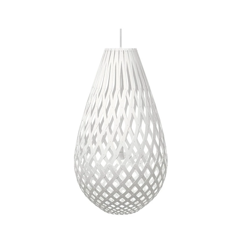 Koura Pendant Light H120 2 Sides White from David Trubridge is a unique pendant light that brings the beauty of nature into your home. Inspired by the woven curves and curvilinear shape of the New Zealand freshwater shrimp, the kōura, this lamp offers a fascinating combination of tradition and modernity. Made from bamboo plywood and held together by nylon clamps, Koura exudes a calm purity and beauty that can be further enhanced by the white finish. With a height of 120 cm, this pendant light is ideal as a sculptural lighting piece that attracts attention in any room. Hang it above a bar, in an entrance hall, stairwell or hallway to create an eye-catching effect. The Koura pendant light is not just a light source, but an artistic addition to your home that creates a warm and inviting atmosphere.