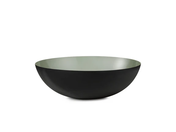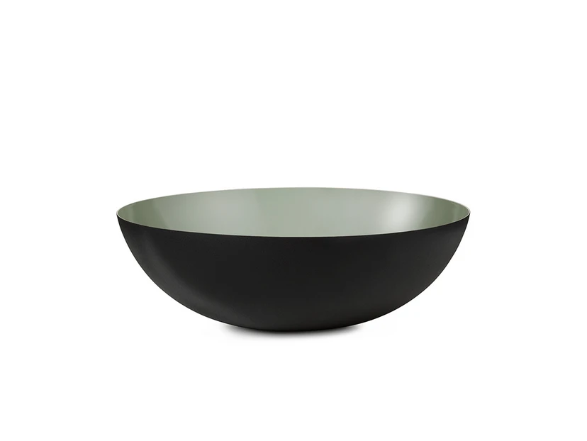 The Krenit bowl Ø 38 dusty green from Normann Copenhagen is an elegant addition to your home. This bowl, which can also be described as a serving bowl, is made of highly polished stainless steel, giving it a durable and stylish finish. The outer surface is matte black, creating a beautiful contrast to the glossy, dusty green inside. The Krenit bowl is perfect for serving salads, fruit or snacks and can also be used as a decorative item in your living room or kitchen. Its timeless design and quality materials make it a must-have for anyone who values both functionality and aesthetics. With its spacious size of Ø 38 cm, it is ideal for both everyday and festive occasions. Add a touch of Scandinavian elegance to your home with this beautiful bowl from Normann Copenhagen.