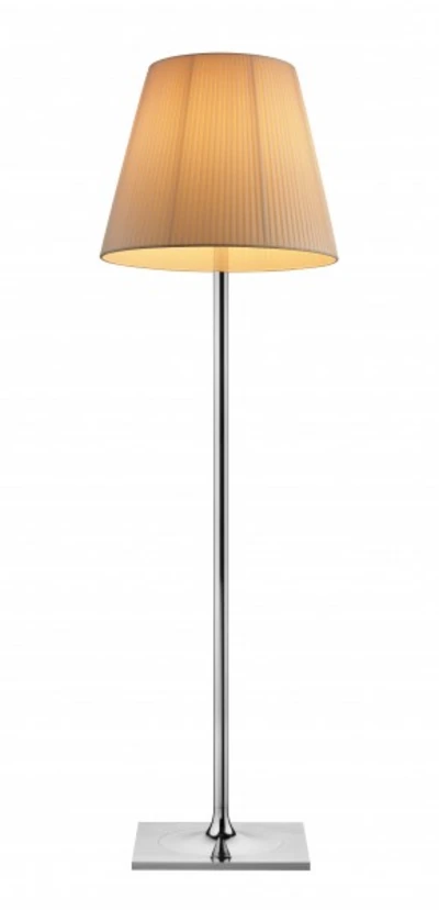 Meet KTribe F3 Floor Lamp Raw White Silk! As Philippe Starck said when he presented the KTribe collection: “You can never leave two Miss K lamps to their own devices. They’ll just multiply.” And so they did, resulting in the beautiful KTribe family of lamps. You can see the Miss K DNA in the KTribe F2 / F3 – both the opal white polycarbonate inner shade and the PMMA outer shade will remind you of the original table lamp. Depending on the model, that outer shade is available transparent or smoked, vacuum-coated in aluminised silver or bronze, or in fabric. The whole KTribe family creates high-quality diffuse illumination.