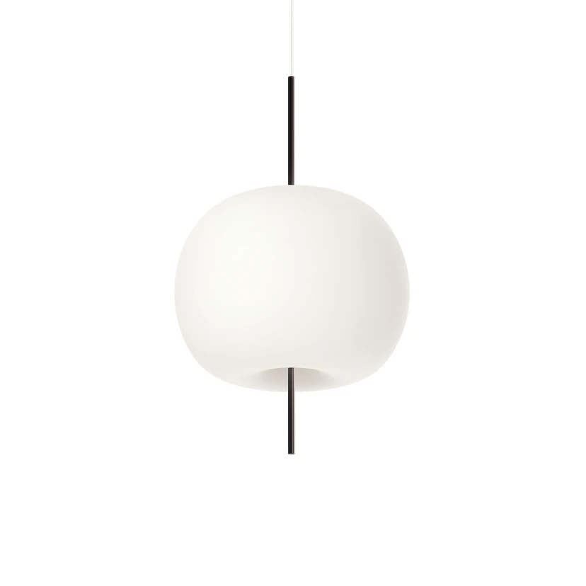 Kushi 33 Pendant Black is an extraordinary lamp that brings to mind candy apples and marshmallows on sticks. First and foremost, the lamp features a big blown glass lampshade, which emits a nice, diffuse, glare-free glow. The lampshade’s swelling shape stands in beautiful contrast to the thin frame, which gives the lamp an organic shape. This combination of shape and functionality radiates calm and comfort—exactly what you need when the sun sets on a long day.