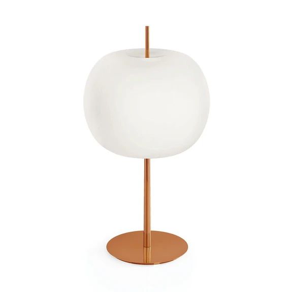 Kushi Table Lamp XL Copper is the epitome of practical lighting, harmonious optics, and creative design, all rolled up into one gorgeous lamp. The lampshade’s bulging shape is beautifully contrasted by the thin frame, making the lamp look like a candy apple. The brains behind the Kushi lamps are the Italian design duo Alberto Saggia and Valerio Sommella for the Milanese lamp manufacturer Kundalini.