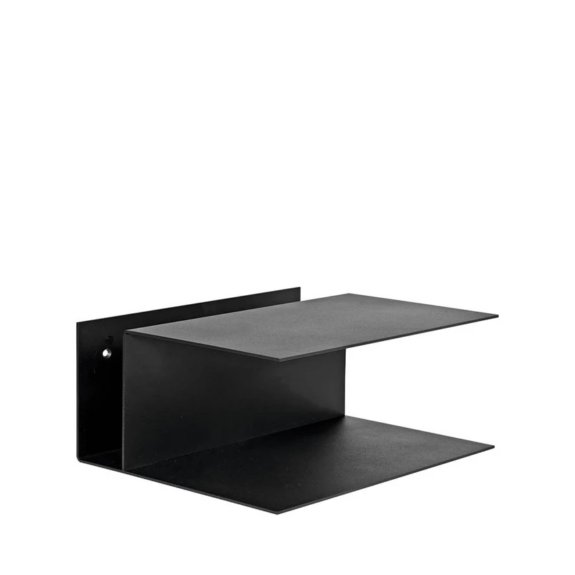 This side table is designed to be mounted on the wall, making it both practical and space-saving. The integrated cable management system ensures that your lamp and charger cords are neatly tucked away, while the two shelves provide ample space for books, electronics and other essentials. The distance between the shelves is 15 cm and there is 6.8 cm from the shelves to the wall, giving you flexibility in storage.