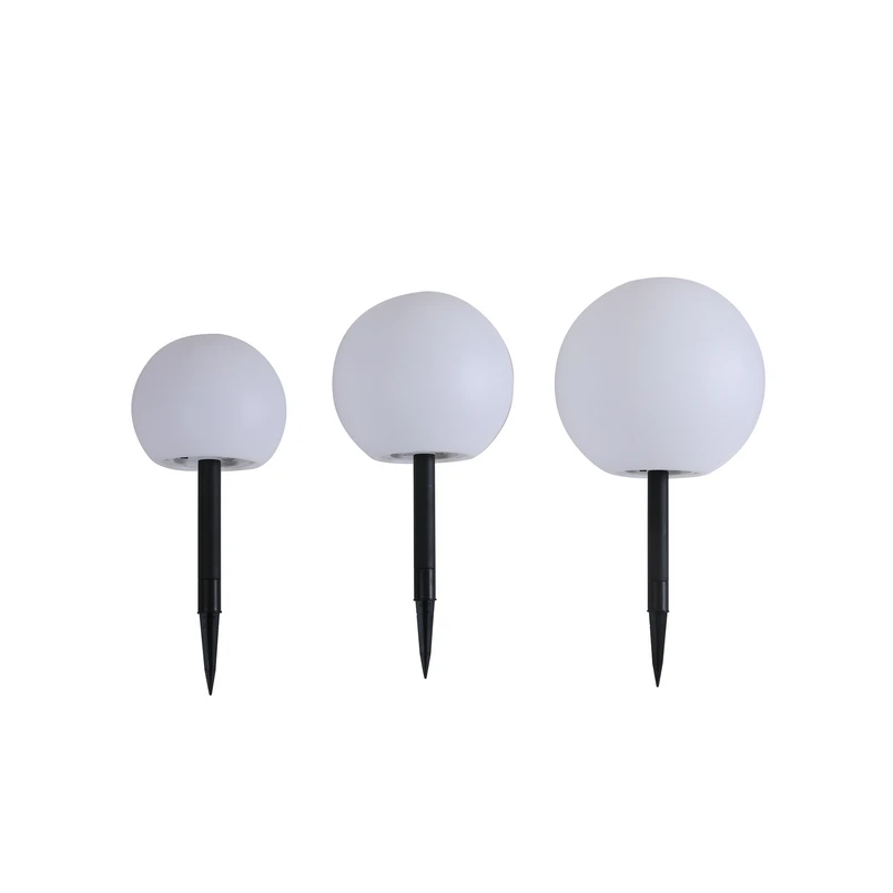 Lago Solar Cell Lamp 3 pcs. White is characterised by a beautiful spherical design, which with its luminous globe shape enriches the garden with an almost astral character. The lamps are delivered in a set of three spheres with a diameter of 20, 25 and 30 cm respectively, which beautifully emphasise each other.