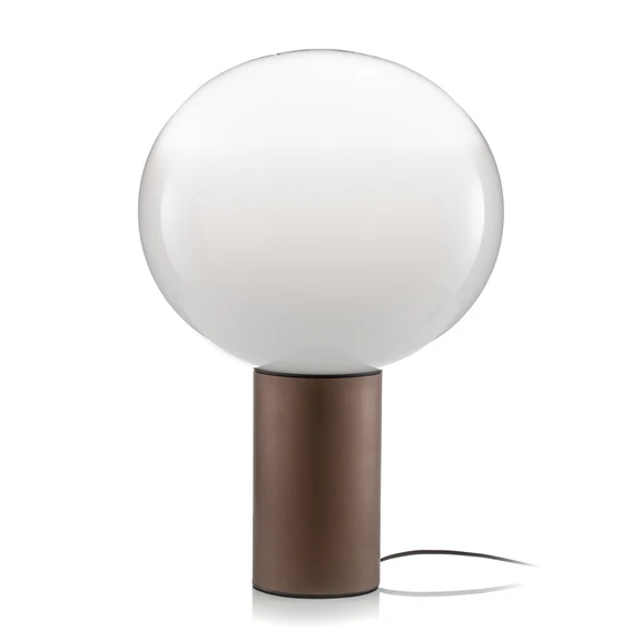 Laguna 37 Table Lamp Bronze is the epitome of a successful symbiosis between different shapes, colours and materials in a beautiful interplay that together form a harmonious whole. The lamp has a beautiful lampshade of mouth-blown glass. The glass is opal white at the bottom and gradually becomes more transparent towards the top, creating a marvellous smoke effect. When the light is switched on, it shines diffusely through the matt surface and directly out through the transparent top in a combined uplight and all-round glow. The lamp's E27 socket fits a wide range of bulb types.