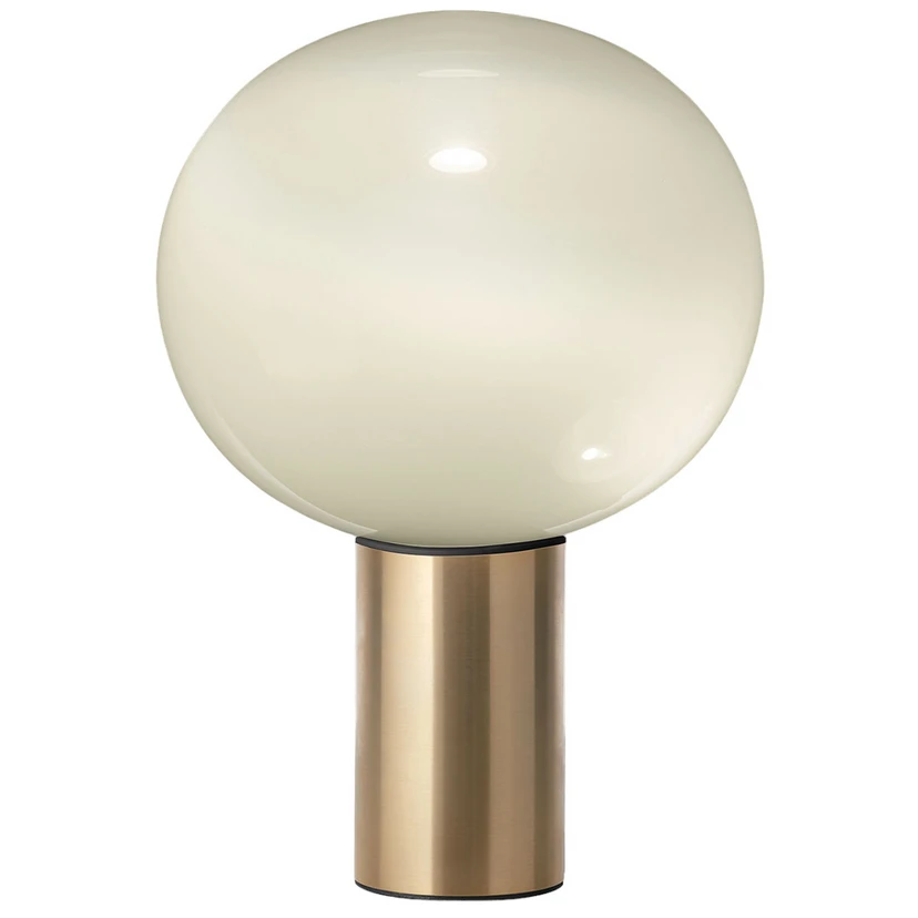 Laguna 37 Table lamp Gold is the epitome of a successful symbiosis between different shapes, colours and materials in a beautiful interplay that together form a harmonious whole. The lamp has a beautiful lampshade of mouth-blown glass. The glass is opal white at the bottom and gradually becomes more transparent towards the top, creating a marvellous smoke effect. When the light is switched on, it shines diffusely through the matt surface and directly out through the transparent top in a combined uplight and all-round glow. The lamp's E27 socket fits a wide range of bulb types.