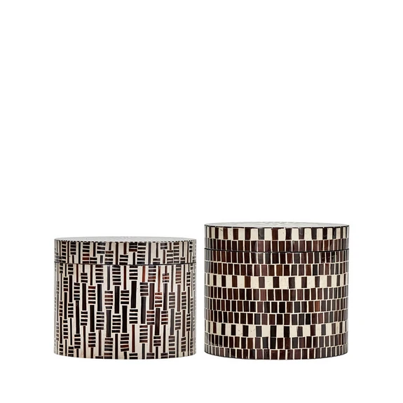 The Lango Storage Boxes Brown/Nature from House Doctor are the perfect combination of style and functionality for your home. Made from MDF and bamboo, these storage boxes bring a warm and natural aesthetic to any room. With their handmade bamboo mosaic patterns in rich brown and cream tones, they add a unique decorative element to both living rooms and bedrooms. The set includes two different sizes, giving you the flexibility to organise and store your belongings in a beautiful way.
