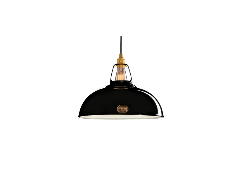 Large 1933 Design Pendant Light Jet Black lives up to the super sleek design that characterises all the iconic industrial lights from long-established British lighting manufacturer Coolicon. Coolicon pendant lights are made to last, both in terms of form and function. The pendant lights, whose history dates back to 1933, are today made of solid steel, while the fired enamel is also applied by hand.