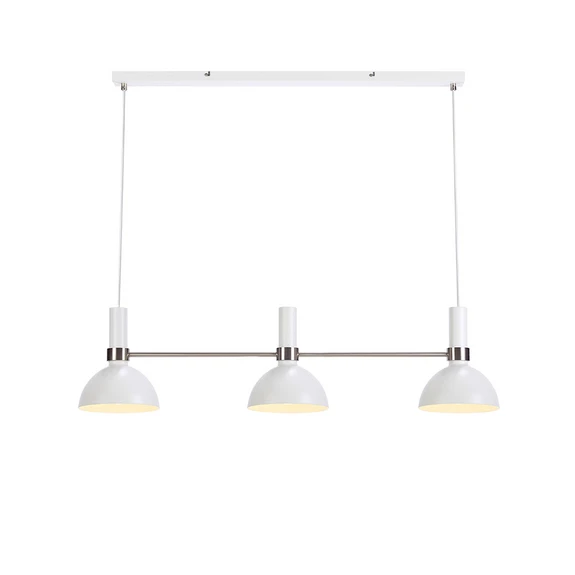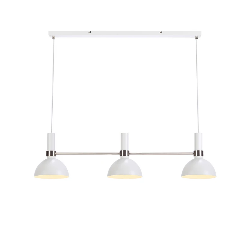 Larry 3 Pendant Light White/Steel from Markslöjd is the perfect combination of classic design and modern vintage style. This elegant pendant light, also known as a pendant lamp, is made of robust iron and has a beautiful white and silver finish that fits perfectly into any home. With its three bowl-shaped lampshades, the Larry 3 Pendant is ideal for hanging over the dining table or in the kitchen where it creates a welcoming atmosphere. Designed by Monika Mulder, this lamp is not only a practical light source but also a stylish interior design object. For the best lighting, we recommend using a warm, dimmable light source to create a cosy atmosphere in your home. The lamp requires three large-socket light bulbs (E27) of max. 60W or LED equivalent, not included. Add a touch of elegance to your home with the Larry 3 Pendant light from Markslöjd.