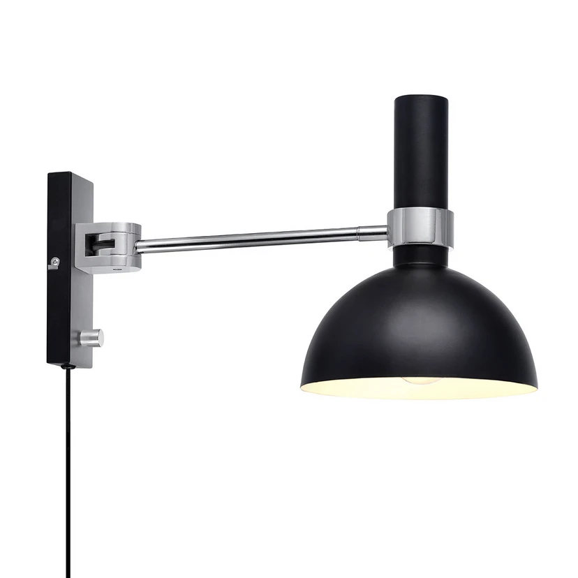 Larry Wall Light Black/Brushed Brass from Markslöjd is the perfect addition to your home if you are looking for a stylish and functional wall light. Designed by Monika Mulder, this wall light combines elegance with practicality. With its sleek design in black and brushed brass, it fits perfectly into modern interiors. The lamp is made of durable iron, ensuring a long lifetime and a timeless look. The Larry wall light is equipped with a built-in dimmer that allows you to adjust the brightness as needed, making it ideal for use by the bedside or next to a sofa group. It can be rotated 180 degrees to both right and left, giving you flexibility in lighting. The lamp requires a large socket (E27) bulb of max 60W or equivalent in LED, which is not included. Make your home more inviting with this versatile light.