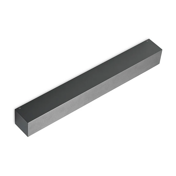 Lengo Outdoor Wall Light L50 Graphite is a modern lighting model with a minimalist, rectangular shape and perfectly straight lines in a simple design that makes it easy to fit into a wide range of environments. The lamp's built-in LED light source shines out from an elongated white cover at the base of the luminaire and reflects down the wall, providing a practical and pleasant indirect light that is particularly desirable when darkness falls and light-sensitive eyes need an effective but soft orientation light.