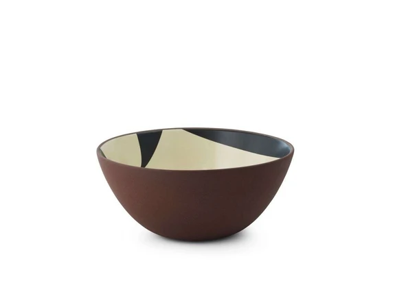 The Line Bowl Ø23 Red Clay is a beautiful addition to the home as it serves not only a decorative but also a practical purpose. The bowl is made of red clay and printed with beautiful patterns on the inside in black and cream coloured decal print. This creates a beautiful play of colours in contrast to the red exterior. At the same time, the shades are matte and the colour scheme is adapted to fit into many different interiors and colour constellations.