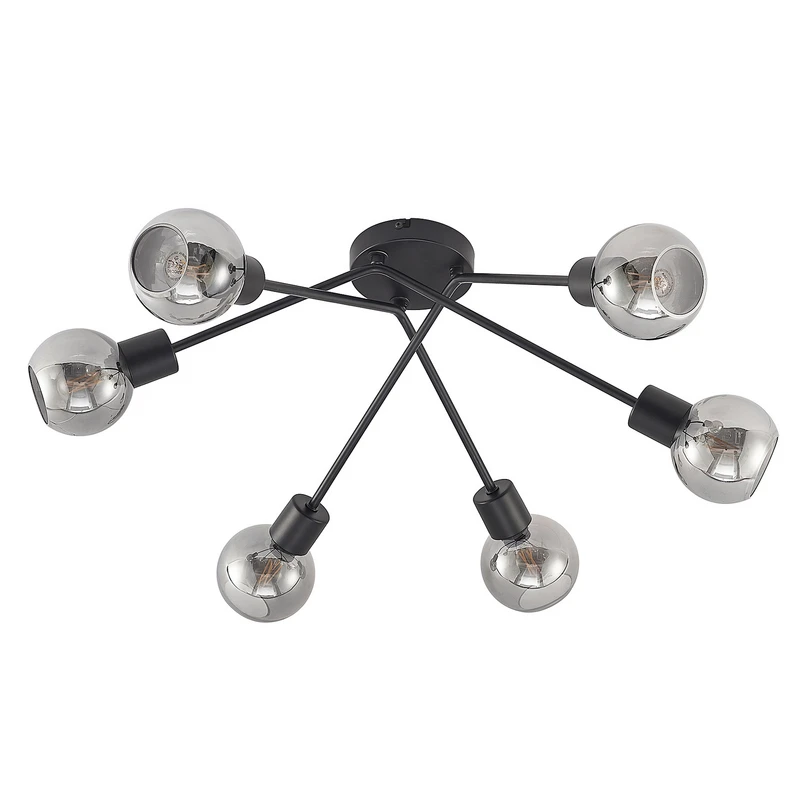 Lioma 6 Ceiling Light Black enriches the room with style and good lighting. The twisted frame and the round lampshade, which sits at the end like a ripe fruit on an autumn branch, give the lamp a romantic look that looks great in rustic, retro-inspired and modern interiors. The light shines both through the glass shade itself and through an opening at the bottom, providing both diffused and direct lighting.