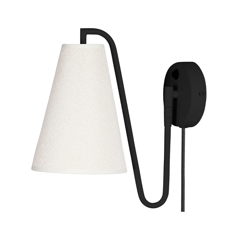 Lou Wall light Bouclé White/Black from Globen Lighting is the perfect combination of functionality and aesthetics. This wall-mounted lamp is designed with a movable joint that makes it easy for you to adjust the light as needed. The lampshade is made of elegant bouclé fabric that adds a modern and soft feel to your space. The painted metal in black and white creates a stylish contrast that fits into many different interior styles. With a 200 cm long white textile cord and a convenient switch on the lamp itself, Lou is both easy to install and use. It can also be easily integrated into a fixed installation if you wish. Whether you place it in the living room, bedroom or hallway, the Lou wall light will add a touch of elegance and functionality to your home.