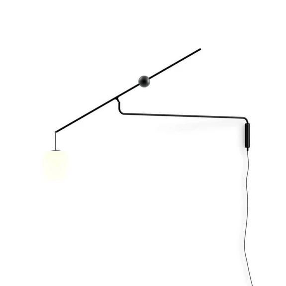This is because the light can be adjusted thanks to a counterweight that makes the light source look almost floating. If you press the button on top of the ball, a buckle is released and the counterweight is free, making it possible to change the diffuser position up and down. The wall light is equipped with two 'arms', which allow for greater flexibility in relation to the position of the diffuser, so that you can change it continuously according to your needs and mood, and thus you can also create your own unique design expression with your lamp.