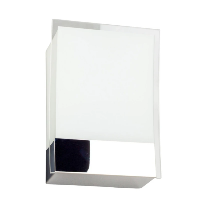 The lamp is characterised by a discreet fan shape. The rectangular metal bracket has a shiny chrome finish, while the opal glass lampshade opens outwards at the top, giving the lamp a beautiful curved shape. The satin glass combined with the shiny chrome finish creates a neutral colour scheme that gives the lamp a beautiful, modern look without being too strict or impersonal. The light bulbs are enclosed by the lampshade, so the light shines out through it in a soft and uniform glow. As the lampshade is also open at the top, the light can also flow out in a harmonious uplight that spreads out on the wall and creates a beautiful accent light.