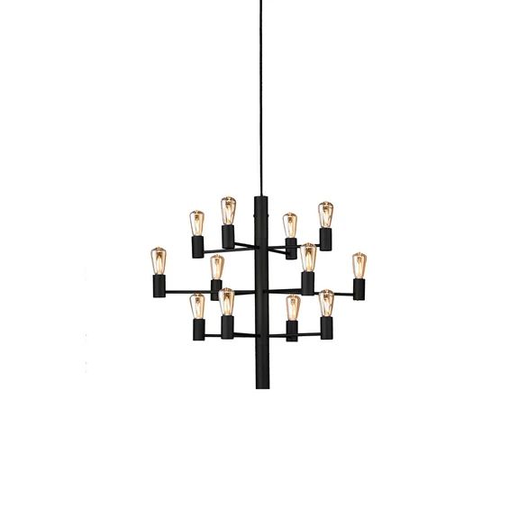 Manola 12 Chandelier Black Dimmable LED is an incredibly beautiful chandelier with modern features. The stunning small series of chandeliers carries the same luxurious design characteristics. A raw, industrial design with exposed light sources sitting on beautiful, slim metal arms. A chandelier that has been cut to the bone in terms of expression to ensure a clean look that will last for many years and fit in most places that invite a chandelier. It can be combined with a jumble of different decorative bulbs to complement the slightly bare industrial look.
