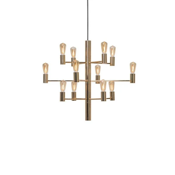 Manola 12 Chandelier Satin Brass is an incredibly beautiful chandelier with modern features. The stunning small series of chandeliers carries the same luxurious design characteristics. A raw, industrial design with exposed light sources sitting on beautiful, slim metal arms. A chandelier that has been cut to the bone in terms of expression to ensure a clean look that will last for many years and fit in most places that invite a chandelier. It can be combined with a jumble of different decorative bulbs to complement the slightly bare industrial look.