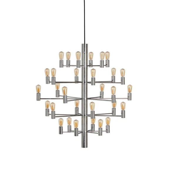 Manola 30 Chandelier Chrome is an incredibly beautiful chandelier with modern features. The stunning small series of chandeliers carries the same luxurious design characteristics. A raw, industrial design with exposed light sources sitting on beautiful, slim metal arms. A chandelier that has been cut to the bone in terms of expression to ensure a clean look that will last for many years and fit in most places that invite a chandelier. It can be combined with a jumble of different decorative bulbs to complement the slightly bare industrial look.