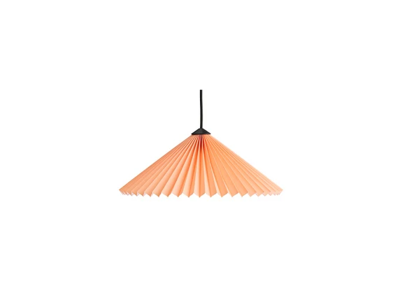 The Matin 380 Pendant Light Peach by HAY is an elegant and functional pendant light that will add a touch of modern poetry to your home. Designed by French designer Inga Sempé, this pendant light combines a pleated cotton lampshade with a braided cotton cord that hangs beautifully from the ceiling. The orange colour creates a warm and inviting atmosphere, perfect for illuminating any room in your home. The Matin 380 Pendant is made of plastic and fabric, ensuring both visual lightness and physical robustness. Inga Sempé's fascination with pleats and their transformative properties shines through in this design, which also reflects her use of sophisticated colours. This pendant light is ideal for those looking for a unique combination of quality and functionality. Make your home more inviting with this beautiful lamp from HAY.