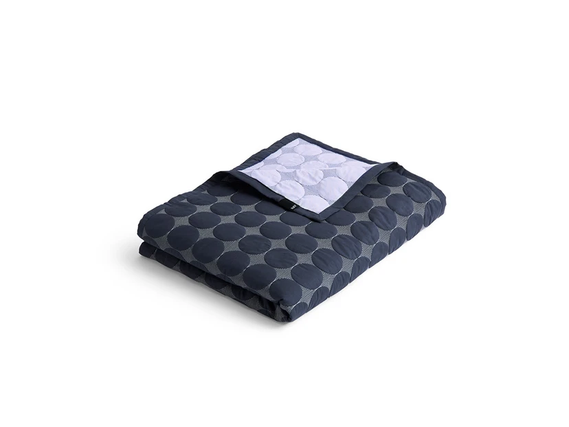 Mega Dot (Organic) 235x245 Midnight Blue by HAY is the perfect bedspread to add a touch of modern elegance to your bedroom. Made from soft and durable cotton fabric, this quilted bedspread presents a three-dimensional circular pattern that combines modern design ideals with a sensuous graphic expression. The midnight blue colour provides a calm and sophisticated atmosphere, while the two-tone design with a contrasting colour on the reverse adds an extra dimension of style. Measuring 235x245 cm, it fits most beds perfectly and can also be used as a decorative rug in the living room. Mega Dot is OEKO-TEX® STANDARD 100 certified, ensuring it is free from harmful substances and safe for you and your family. Make your home more inviting and stylish with this versatile and beautiful bedspread.