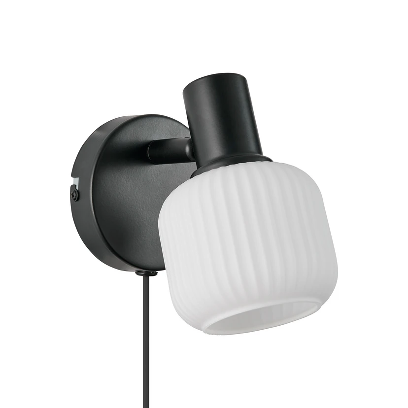 The Milford Mini Wall Light Black from Nordlux is the perfect addition to your home if you are looking for a stylish and modern wall light. This wall light combines elegant opal glass with black metal, creating a timeless design that fits into any decor. The mouth-blown opal glass gives the lamp a soft, almost pleated surface that adds a sense of sophistication and elegance to the room. With a diameter of 15 cm, the lamp is ideal for smaller spaces or as part of a larger lighting solution. The fluted surface of the glass gently diffuses the light and creates a cosy atmosphere that is perfect for relaxation or mood lighting. Whether you place it in the living room, bedroom or hallway, the Milford Mini wall light from Nordlux will give your home a modern and sophisticated look.