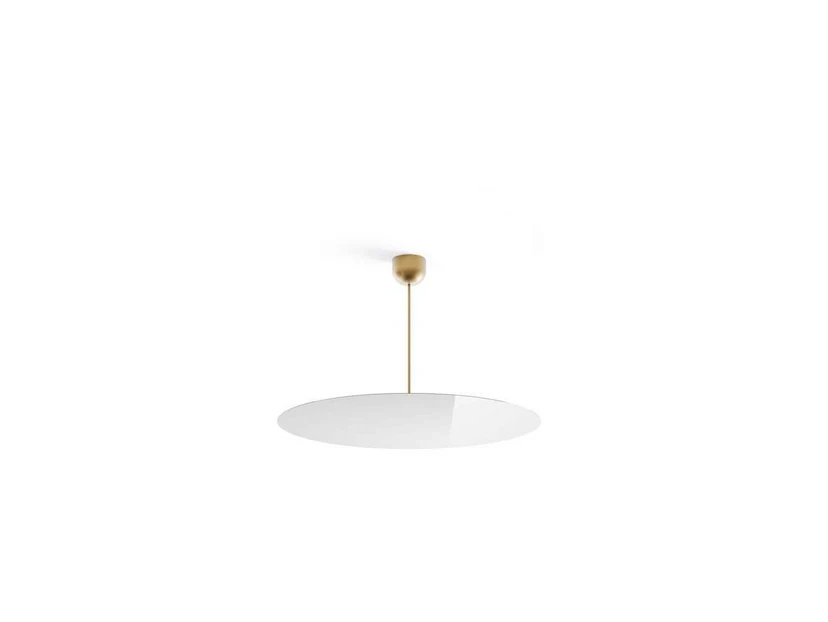 The lighting collection consists of wall and pendant lights in several different versions, sizes and colour variants. What characterises them all is their ultra-thin design. The lampshade consists of a disc with a thickness of just a single millimetre, which also gives rise to the name of the series, but at the same time has an impressive width that ensures diffused lighting when the lamp is switched on. The underside of the disc is mirror-finished, while the LED light source is placed on the upper side so that the light does not dazzle but is instead directed upwards in a diffused uplight that spreads beautifully throughout the room and creates a pleasant lighting effect.