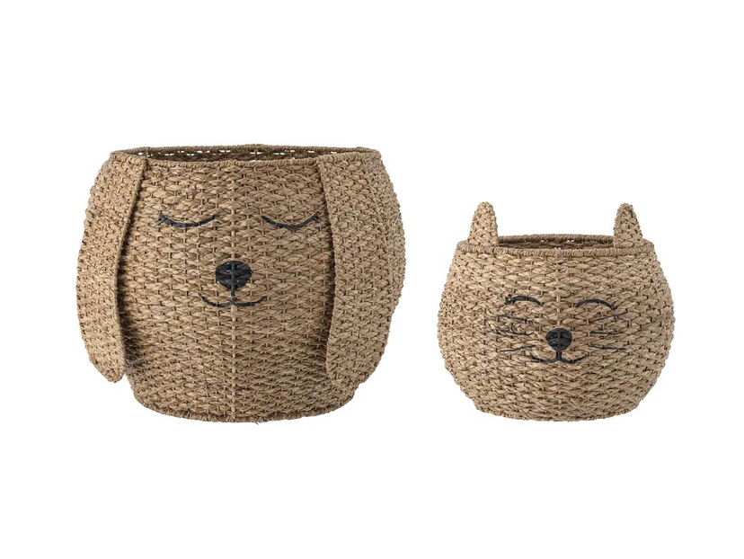 Milus Basket Bankuan Grass 2 pcs. Nature from Bloomingville is the perfect basket set for those who want both functional and aesthetic storage in their home. These beautiful baskets are ideal for the nursery or any room where a cute and practical toy storage solution is needed. Made from a combination of metal and rattan, the baskets have a natural wood colour that will fit into any decor. They are designed in a size that makes them perfect for storing everything from teddy bears and dolls to dress-up clothes and toy cars. With the Milus Basket Bankuan Grass you not only get a practical storage solution, but also a decorative element that adds warmth and cosiness to your home. Make tidying up a breeze and create order in style.
