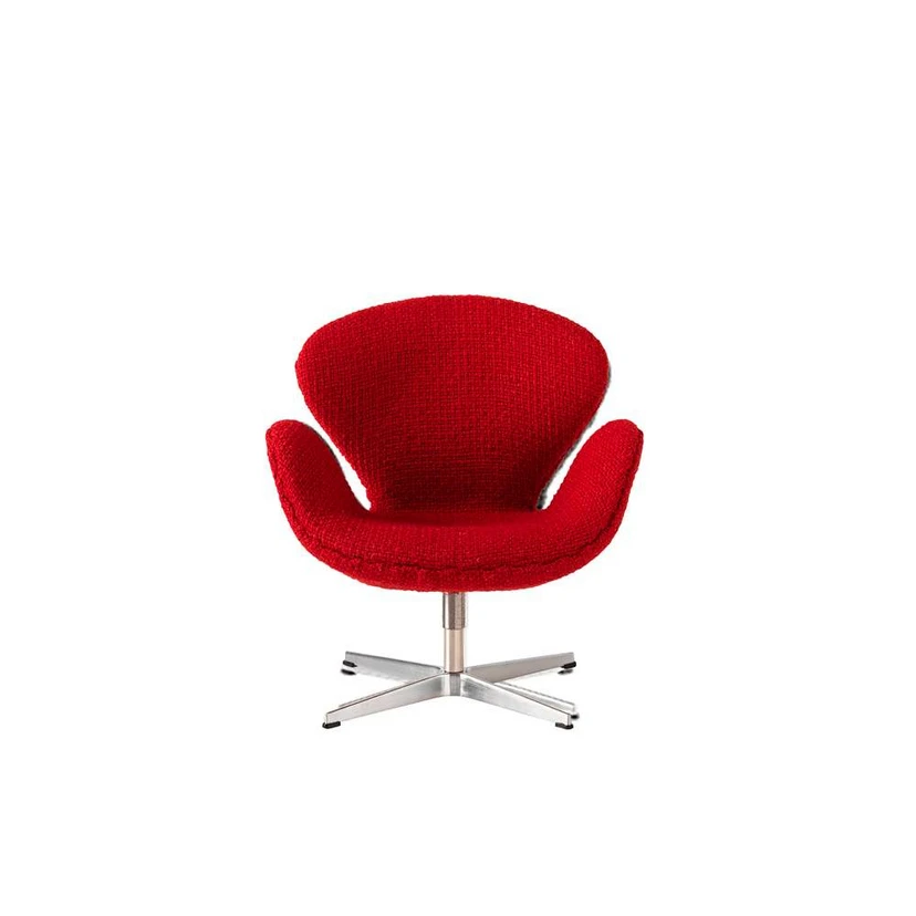Miniature Swan™ Red is exquisite Danish design in a neat little edition. It’s one of the various miniature versions of the classic Arne Jacobsen chairs—manufactured by Fritz Hansen. The chair has a 1:6 ratio, but other than that, it’s made exactly like the original, which means that it’s also upholstered by hand.