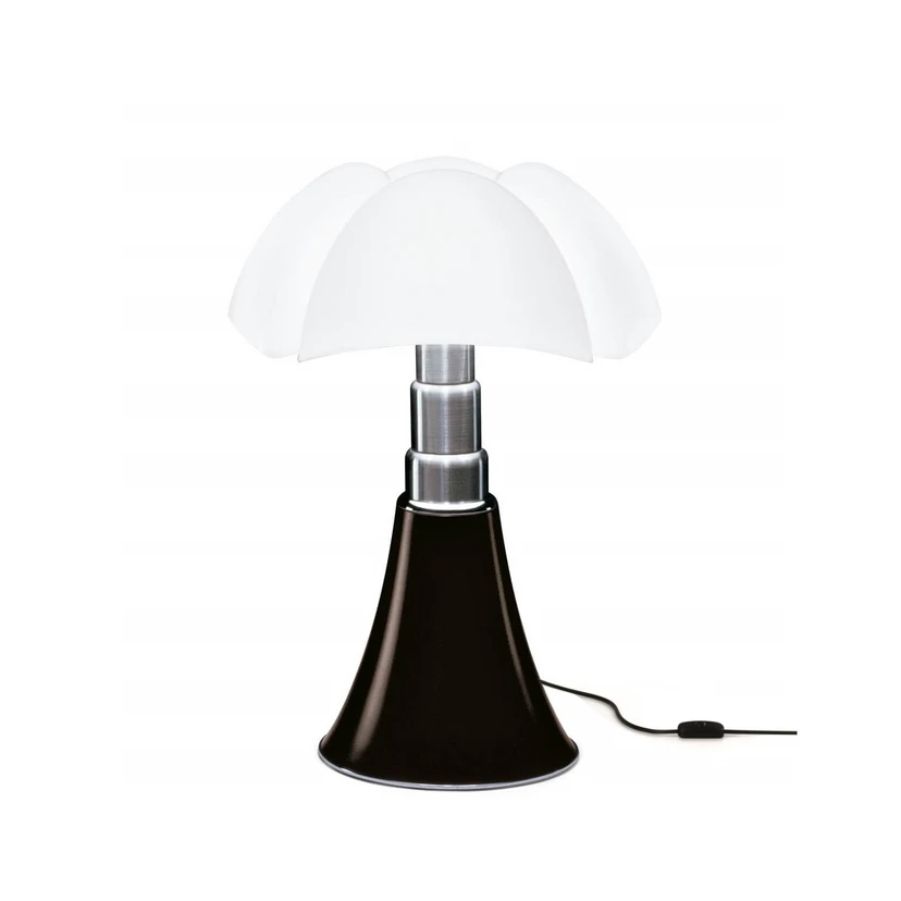 The table is inspired in equal parts by a sharp focus on function and the organic shapes of nature. The lampshade is designed to look like the wings of a bat, hence the name that means ‘bat’ in Italian. Just like various other designers in post-war Europe, Gae Aulenti is fascinated by the new avant-garde school of design, and this fascination is reflected in the lamp’s experimental touch.
