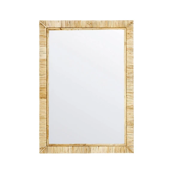 The Miro Mirror 70x50x4 Nature from House Doctor is the perfect choice for those who want to add a touch of natural charm to their home. This mirror, which belongs to the mirror category, is made of glass, cane, wood and MDF and its natural colour will fit beautifully into any decor. With a unique combination of sugar cane and mango wood, each mirror is handcrafted, ensuring you get a unique piece that stands out.