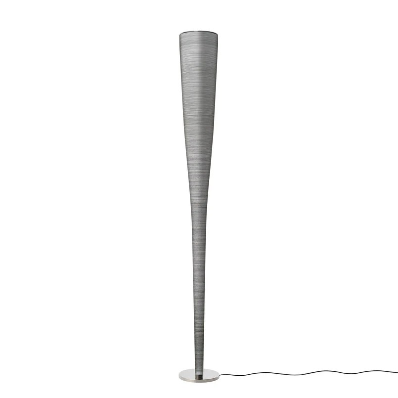 The Mite floor lamp with in striped with a base of chromed metal. Winner of the Compasso d’Oro design award in 2001.