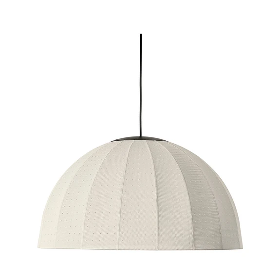 Mollis Pendant Ø65 Off White is a unique and elegant lamp from Made by Hand that stands out from traditional pendant lights. Instead of glass or metal, this pendant light is made of fabric that is knitted in 3D. The knitted lampshade is pulled over a metal frame, which resembles a pullover. This simple construction ensures minimal material use and the lampshade can easily be removed for washing or replacement. The Mollis Pendant is designed to direct most of the LED light downwards, while the fabric also diffuses the light and creates a soft atmosphere in the room. The knitted pattern allows the light to shine through and emphasises the shape and architectural character of the lamp. This pendant light is soft, elegant and understated, making it as timeless as a cathedral vault - if vaults were knitted. Add a touch of modern elegance to your home with the Mollis Pendant Light..