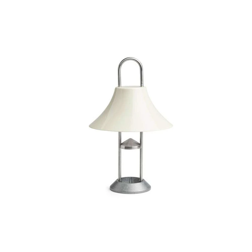 The Mousqueton Portable Table Lamp tends to be a small work of art in itself thanks to its design-oriented shape and striking colour. The lamp is also a practical matter, as its cordless design allows it to be carried around with you. Due to its high protection class, the lamp is also suitable for outdoor use and therefore invites you to cosy moments in the garden or on the terrace. The frame is designed so that it forms an arc at the top. This makes it possible to hang the lamp on e.g. trees as a beautiful lantern on dark evenings.