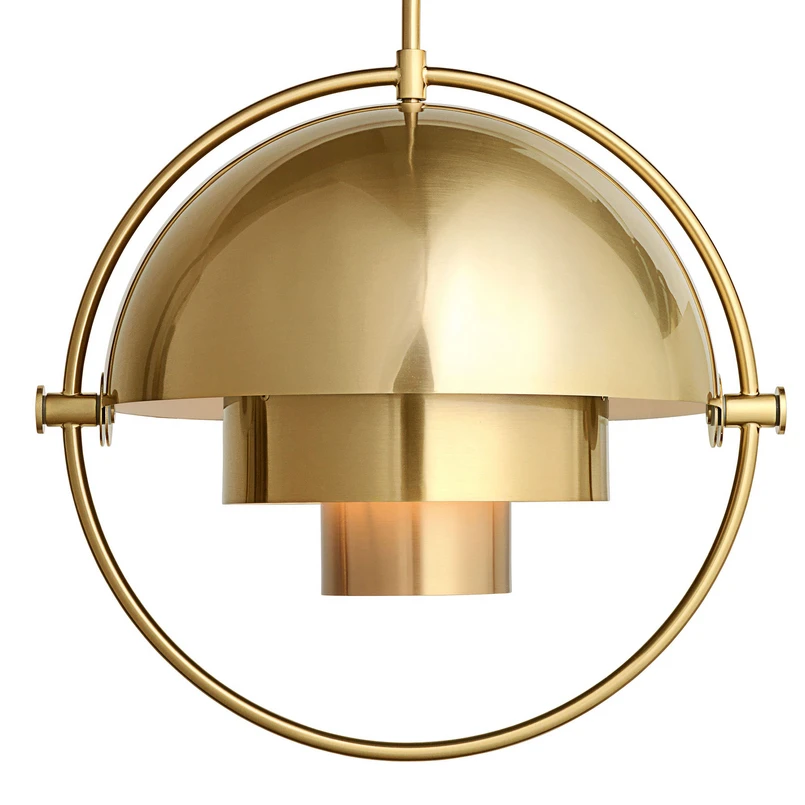 The Multi-Lite pendant in Brass/Brass embodies the Golden Era of Danish design, thanks to its characteristic shape consisting of two opposing adjustable shades. These make it possible to create a personal expression and a wide range of light intensities in the room. By rotating the lampshades individually, the Multi-Lite pendant can be positioned in various ways, directing the light upwards, downwards, or asymmetrically into the room for a more artistic feel.