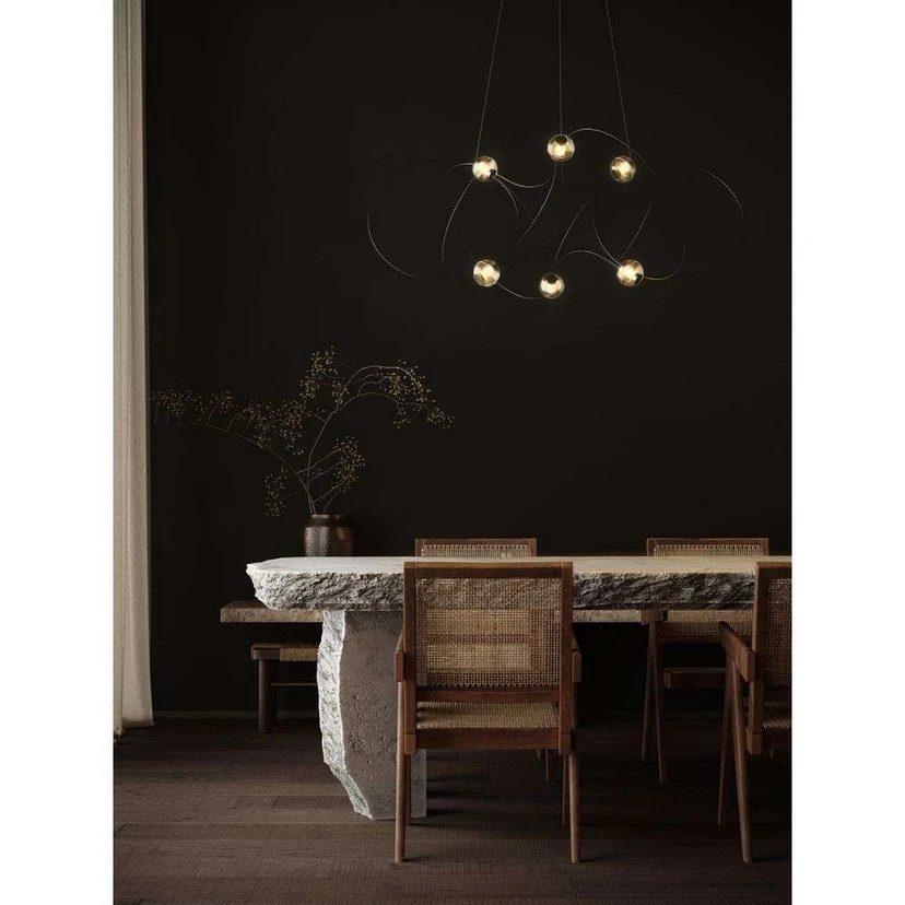 Munari 6 Pendant Light Gold from DCW is a unique pendant light that brings an artistic and playful dimension into your home. Inspired by the Italian Op Art movement and designed by the renowned Bruno Munari, this lamp combines both aesthetics and functionality. With its six light sources, it creates a cosmic atmosphere reminiscent of a Spirograph, where the lights float like satellites in space. Made from steel, aluminium and polycarbonate, this pendant light is both robust and elegant with its golden finish that adds a touch of luxury to any interior. The modular design makes it easy to customise the lamp to your needs and it comes in a flat cardboard box with simple assembly instructions that make installation a breeze. Munari 6 Pendant Gold is not just a lamp, but a work of art that will fascinate and inspire..