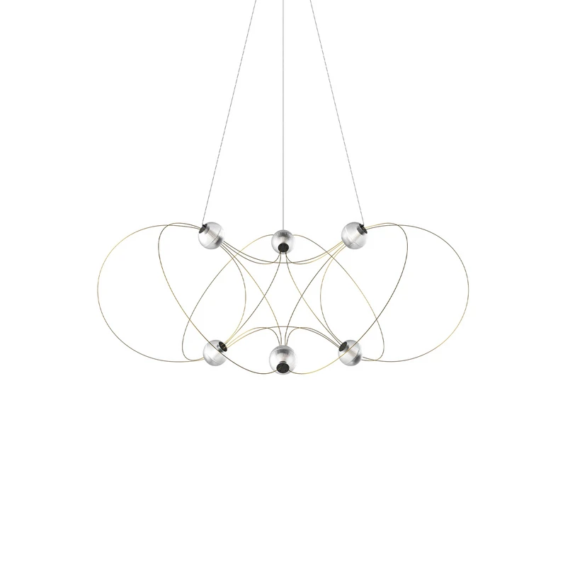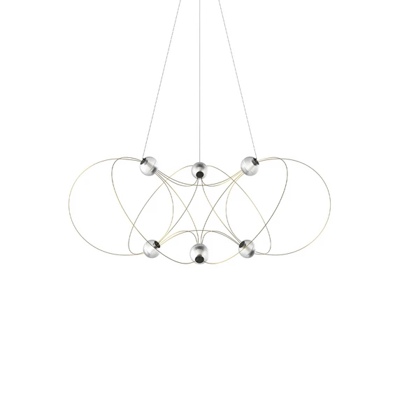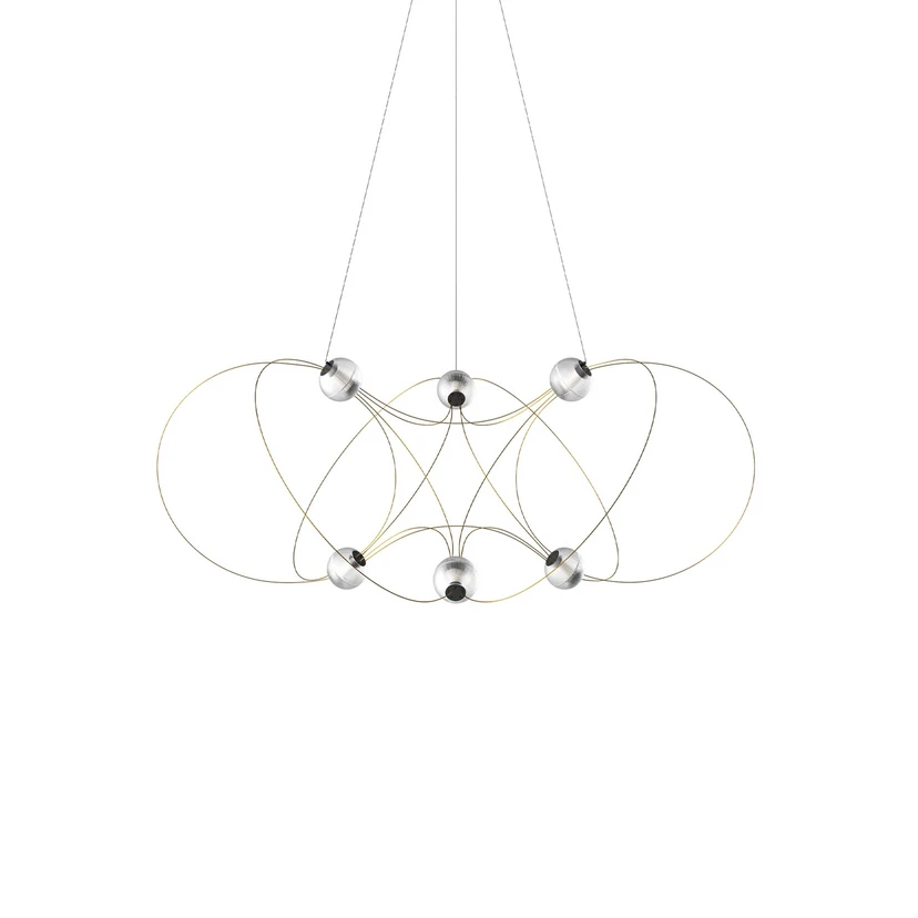 The Munari 6 pendant light, with its six light sources, delicate metal rods and integrated LED spheres, is sure to become the centrepiece of any room. Munari moves with ease and elegance, straddling the line between sculpture and lighting. A logical balance formed by spheres and rods, creating a poetic structure that for some is reminiscent of magnetic field lines or a constellation of planets – this is the Munari pendant light by renowned industrial designer Lutz Pankow.
