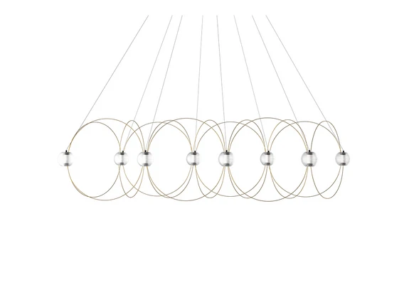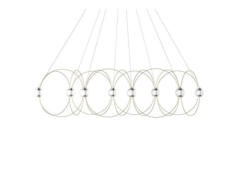 Munari 8 Pendant Light Gold from DCW is a unique pendant light that brings an artistic and playful dimension into your home. Inspired by the Italian Op Art movement and designed by German designer Lutz Pankow, this lamp is a tribute to the famous artist Bruno Munari. With its eight light sources, the Munari 8 Pendant creates a mesmerising atmosphere reminiscent of a cosmic Spirograph where luminous planets float in space. The lamp's steel, aluminium and polycarbonate construction ensures both durability and an elegant look in gold that fits perfectly into modern interiors. The modular design makes it easy to adapt the lamp to different spaces and needs, and the included assembly instructions make installation a breeze. The Munari 8 Pendant is not just a light source, but a work of art that adds character and style to any room..