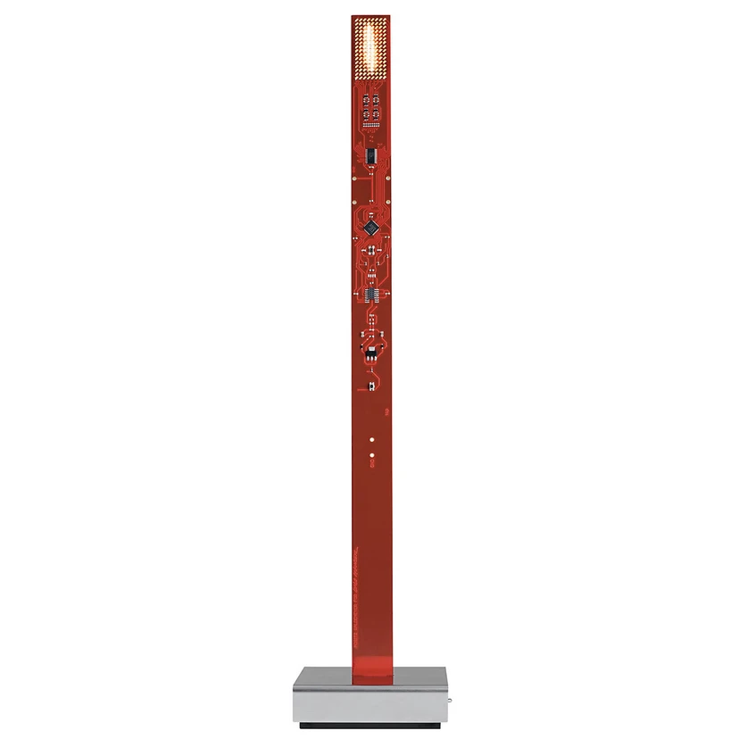 The body is a slim and rectangular printed sheet that levitates from a couple of thin wires. The top of the sheet is mounted with 128 individual, small, dimmable LED lights that can be turned on and off, making them look like flickering candles. The lamp only uses 0.6 Watt and is therefore ideal mood lighting.