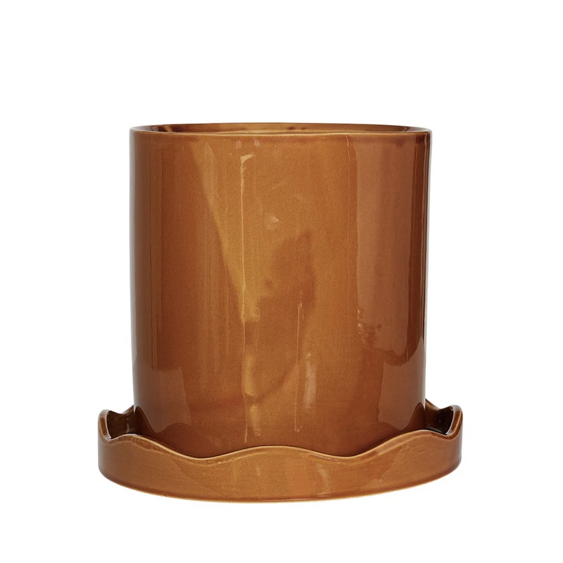 The Nami Flowerpot w/Bottom Bowl Medium Amber from OYOY Living Design is the perfect addition to your home. Made from 100% stoneware, this flower pot is uniquely glazed to give each pot a beautiful and individual finish. With its elegant design that combines minimalism and organic shapes, it adds a playful charm to any room. The warm amber colour creates a welcoming atmosphere that is perfect for both kitchen herbs and your favourite plants. The Nami flower shelter is ideal for indoor use as it is frost-resistant, making it a safe choice for your plants all year round. You can easily mix and match with other pots to create a dynamic and personalised look in your home. Liven up your decor with this stylish and functional flower planter from OYOY Living Design.