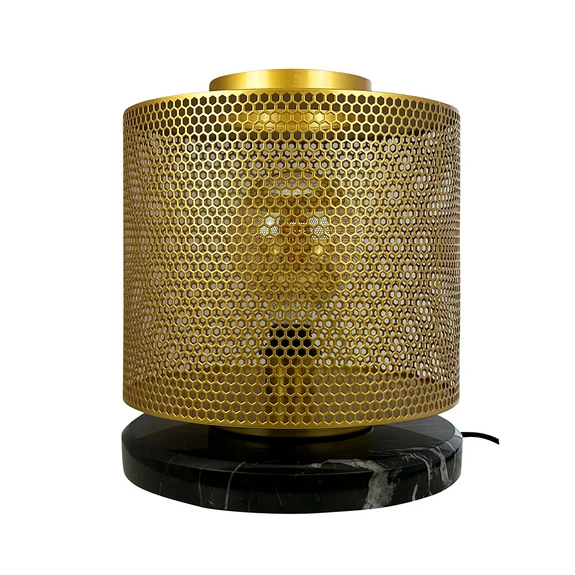 Nantes Table Lamp Brass from DybergLarsen is a unique and different table lamp that brings a sense of elegance and romance into your home. This lamp is created with a beautiful hexagonal mesh in brass, which together with the black marble base creates a unique glow and makes the lamp a work of art in your interior. The Nantes table lamp is designed to be an eye-catching element that attracts attention and adds style to any room. With its compact dimensions of Ø30 cm x H35 cm, it fits perfectly on a chest of drawers or desk where it can serve as both a practical light source and a decorative object. The lamp uses an E27 socket and can use light bulbs with a maximum power of 40W, but please note that the bulb is not included. Explore more table lamps from DybergLarsen to find the perfect lighting for your home.