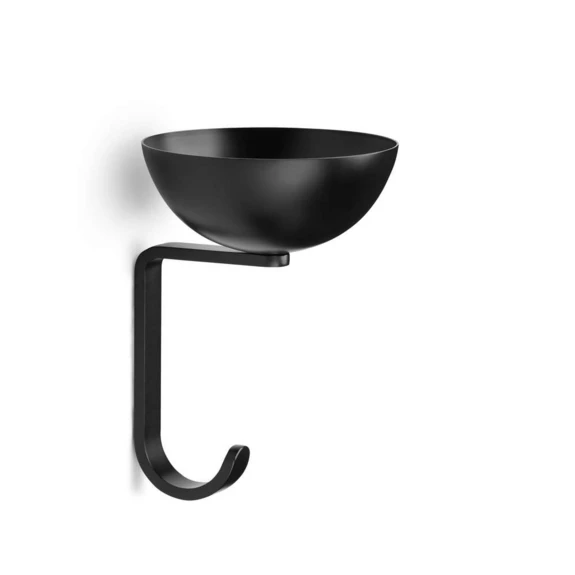 Nest Wall Hook Matt Black offers practical features and an aesthetic design. The fixture consists of a hook with a small bowl placed on top, giving you a place to hang your coats and a nest in which to store keys and wallets. In other words, it saves you the trouble of having to look for important objects as you rush out the door.