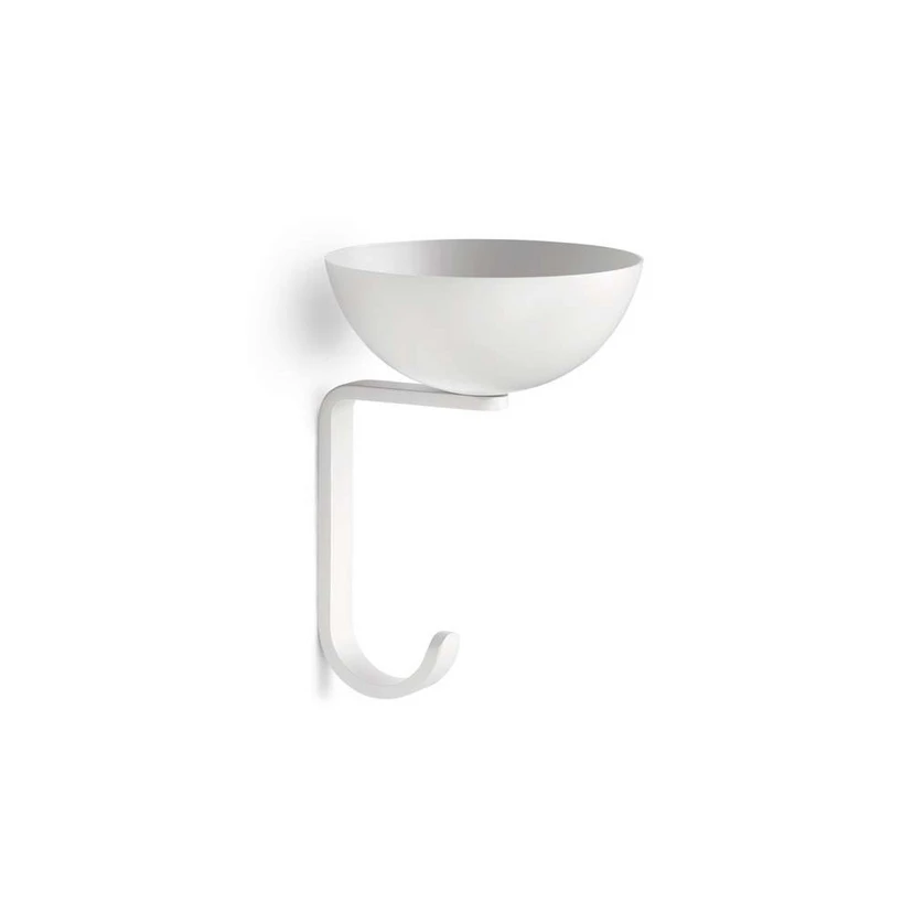 Nest Wall Hook Matt White offers practical features and an aesthetic design. The fixture consists of a hook with a small bowl placed on top, giving you a place to hang your coats and a nest in which to store keys and wallets. In other words, it saves you the trouble of having to look for important objects as you rush out the door.