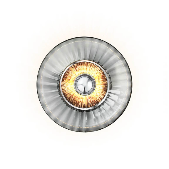 The lamp is available as a pendant or a wall lamp in two different sizes. The pendant projects an atmospheric pattern onto its surroundings while the wall lamp casts a brilliant light onto the wall and all the way around the lampshade. New Wave Optic is available in three colours: clear, smoked, and rose glass—these stylish lamps are a natural addition to the modern home regardless of décor.