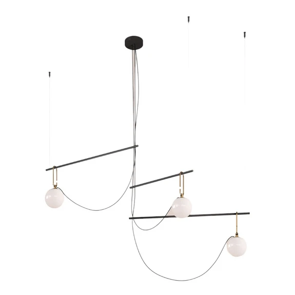 Nh Pendant Black/Brass S3 14 exudes oriental lightness, enchanting every room with its atmospheric lighting effect. The design of the lamp is the result of an interesting interplay between different shapes, colours and materials. The frame is made of metal and has a dual colour scheme of matte black and shiny brass that beautifully balance each other. The lampshade is spherical and made of pearl white glass. The glass is mouth-blown, so individual variations can occur, making each lamp unique. The masterminds behind this beautiful lamp are the design duo Neri & Hu for the famous Italian lighting manufacturer Artemide.