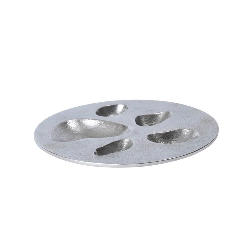 The Niche Piece 22 Dish Aluminium - Ferm Living is a unique piece of home accessories that combines functionality with artistic expression. Made from recycled aluminium with a textured sand-cast finish, this dish is both eco-friendly and stylish. The organic carvings and small niches add depth and visual interest, making it an eye-catching element in your home.