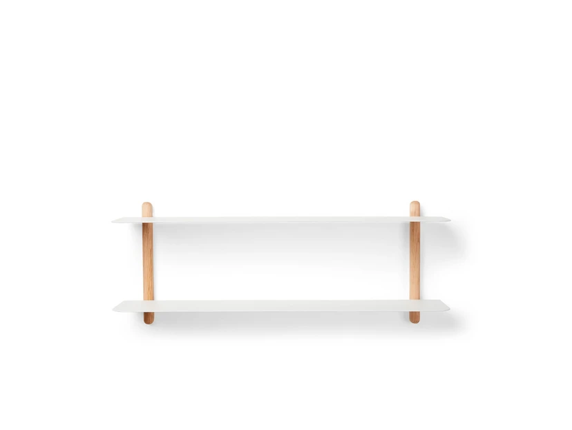Nivo Shelf F Light Oak/White from GEJST is the perfect addition to your home. This minimalist wall shelf, designed by Böttcher and Kayser, is created with a focus on simplicity and elegance. The shelf is made of wood and has a white finish that fits into any room. With its clean design and no superfluous elements, Nivo gives the shelf a floating and light expression. Each component is carefully thought out and there are no visible screws, adding to the elegant look. The slanted cut of the vanes allows the shelves to slide perfectly into place, creating a fluid feel. Ideal for the living room, bedroom or office, this shelf will add a touch of Nordic simplicity to your interior design. Nivo Shelf F Light Oak/White is discreet yet compelling in its functionality and aesthetics.