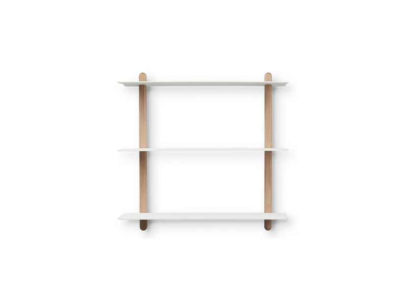 The Nivo shelf is designed without visible screws, and the slanted cut of the brackets allows the shelves to slide into place and create a floating look. The large version of the Nivo shelf offers more applications thanks to the larger shelves and higher weight capacity. It is available in six different configurations (A, D, E, F, G & H), giving you the flexibility to choose the one that best suits your needs.