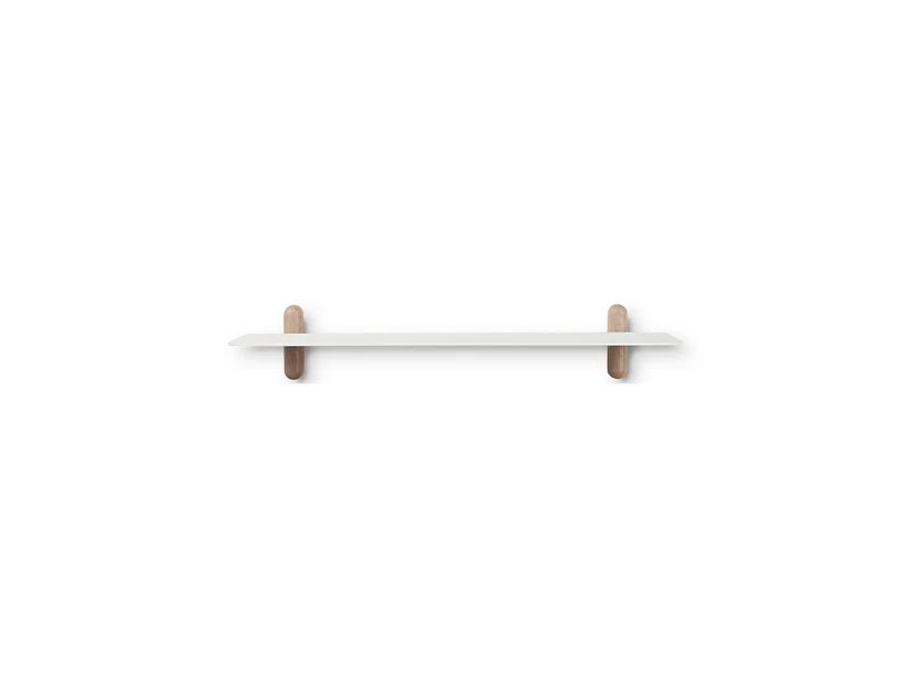 Nivo Shelf Large G Light Oak/White from GEJST is an elegant and minimalistic shelf that fits perfectly into any home. Designed by Böttcher and Kayser, this wall shelf is made of wood and comes in a beautiful combination of light oak and white. With its Nordic look and clean lines, the Nivo shelf is both discreet and compelling in its simplicity. Every detail is carefully thought out, from the invisible screws to the bevelled slats that give the shelf a floating appearance. The large version of the Nivo shelf offers more applications than the smaller model, thanks to the larger shelves and increased weight capacity. This shelf is ideal for storage and display in any room of the home and is available in six different configurations. Whether you need extra storage space in the living room, kitchen or bedroom, the Nivo shelf from GEJST is a stylish and functional choice.