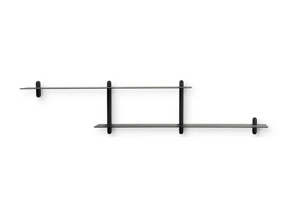 Nivo Shelf Large H Black Ash/ Black from GEJST is an elegant and minimalistic wall shelf that fits perfectly into any Nordic-inspired home. Designed by Böttcher and Kayser, this shelf is made of black ash wood and has a clean and focused design without superfluous elements. With its discreet appearance and compelling simplicity, the Nivo shelf creates a floating and elegant look on the wall. Every detail is well thought out, from the invisible screws to the bevelled edges that make the shelves slide perfectly into place.